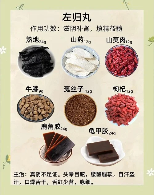 左归丸出自明代张介宾(景岳)所著《景岳全书·新方八阵》,是滋补肾阴的经典方剂,专治真阴不足之证。其调理冲任、养血助孕的机理可从以下方面分析:
